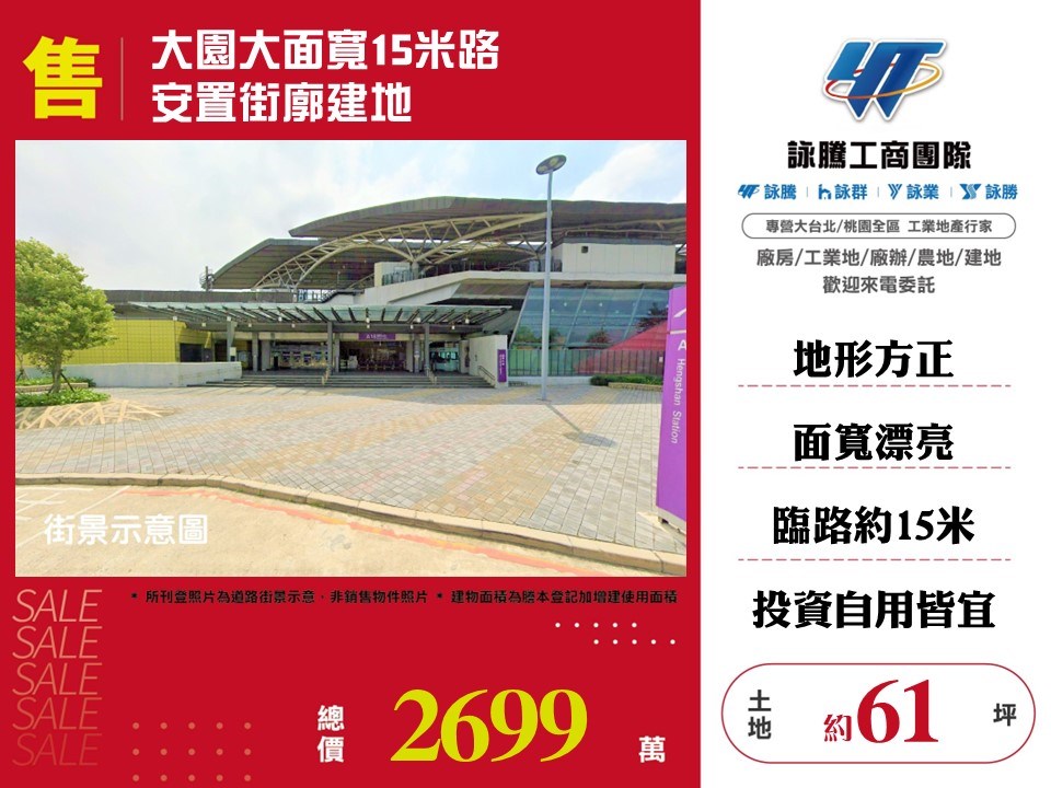是否想知道更多桃園廠房或工業地物件資訊,或是您有任何疑問, 請您交給 詠騰工業不動產團隊(曾治緯) 專營桃園工業地廠房買賣及出租服務,不論是工業用地、工業廠房、工業廠辦大樓、農地廠房、物流廠房、天車廠房,各種坪數/各種規格的物件最齊全 土地的專營種類有工業用地、重劃區建地、商業區建地等, 廠房的專營種類有RC廠房、鋼構廠房、SRC廠房、鋼骨結構廠房等, 專營桃園各區農地:桃園農地、蘆竹農地、新屋農地、楊梅農地、新屋農地、楊梅農地、觀音農地、龜山農地、八德農地、平鎮農地, 地標區域還有八德交流道、台61快速道路、楊梅交流道/青埔機場捷運區 還有各大工業區工業地廠房買賣及出租;龜山工業區、幼獅工業區、平鎮工業區、中壢工業區、觀音工業區、大園工業區等、桃園科技園區 整個大桃園地區內的桃園區、龍潭區、大溪區、八德區、龜山區、中壢區、楊梅、新屋區、青埔區(桃園高鐵)、蘆竹區(南崁)、大園區全都有 還有擁有最新資訊,並為所有賣家提供最大曝光買賣在各大如591、Yes319、Houseinfo HouseFun、HouseWeb(HW)、熱門房屋ppt、買房ppt等平台, 詠騰工業不動產團隊(曾治緯),您的需求即是詠騰工業不動產團隊最大的服務目標. 聯絡電話:0981-681-379 歡迎來電 Line ID : 803033 營業地址:桃園市桃園區中正路1391號(點我開啟 Google 導航)