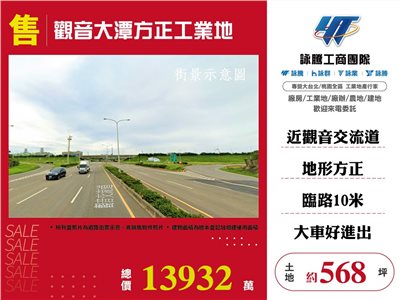 《詠騰工商團隊》 專營桃園工業地廠房出租出售 案名:觀音大潭方正工業地 [價格]:13932萬 [坪數]:約568坪【權狀+增建坪數】 [地理位置]:台61旁