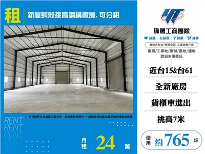 案名:新屋蚵殼挑高鋼構廠房/可分租