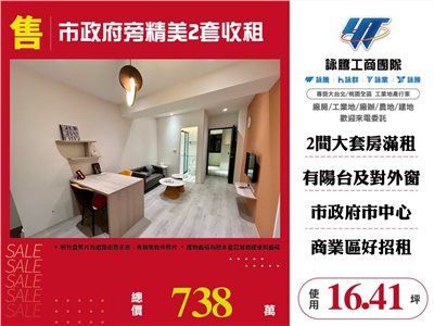 《詠騰工商團隊》 專營桃園房地產出租出售 案名:市政府旁精美2套收租 [價格]:738萬 [坪數]:16.41坪【權狀+增建坪數】 [地理位置: 近市政府市中心