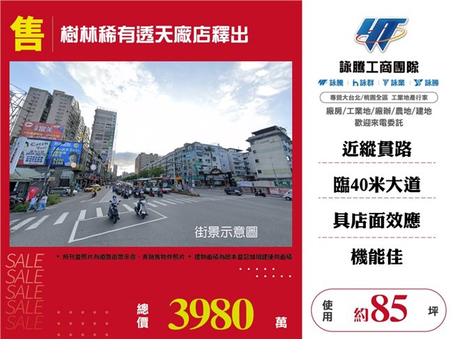 《詠騰工商團隊》 專營桃園廠房工業地出售出租 案名:樹林稀有透天廠店釋出 [價格]:3980萬 [坪數]:約85坪【權狀+增建坪數】 [地理位置]:近三多國小