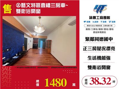 案名:正藝文特區壹樓三房車~雙衛浴開窗