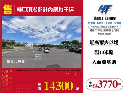 《詠騰工商團隊》 專營桃園工業地廠房出租出售 案名:林口頂湖都計內千坪 [價格]:14300萬 [坪數]:3770坪【權狀+增建坪數】 [地理位置]:近北120縣道