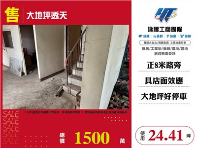 《詠騰工商團隊》 專營桃園房地產出租出售 案名:大地坪透天 [價格]:1500萬 [坪數]:約24.41坪【權狀+增建坪數】 [地理位置]:近霄裡國小