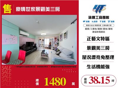 《詠騰工商團隊》 專營桃園房地產出租出售 案名:豪情世家景觀美三房 [價格]:1480萬 [坪數]:約38.15坪【權狀+增建坪數】 [地理位置]:藝文特區