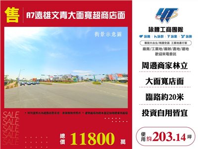 《詠騰工商團隊》 專營桃園房地產出租出售 案名: A7遠雄文青大面寬超商店面 [價格]:11800萬 [坪數]:約203.14坪 [周邊]:機場捷運A7站
