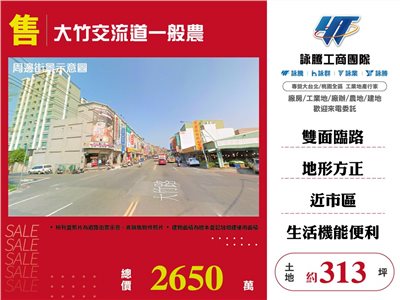 《詠騰工商團隊》 專營桃園工業地廠房出租出售 案名:大竹交流道一般農 [價格]:2650萬 [坪數]:約313坪 [交通]:大竹交流道