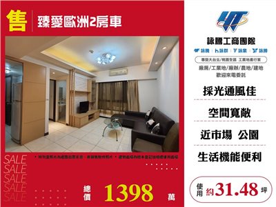 《詠騰工商團隊》 專營桃園房地產出租出售 案名:臻愛歐洲2房車 [價格]:1398萬 [坪數]:約31.48坪 [周邊]:大業國小