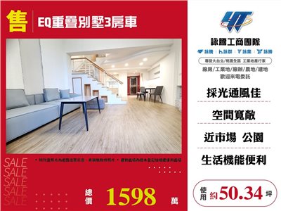 《詠騰工商團隊》 專營桃園房地產出租出售 案名:EQ重疊別墅3房車 [價格]:1598萬 [坪數]:約50.34坪 [周邊]:同安國小