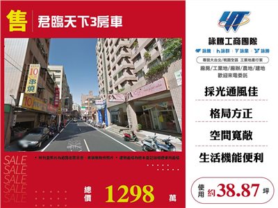 《詠騰工商團隊》 專營桃園房地產出租出售 案名:君臨天下3房車 [價格]:1298萬 [坪數]:約38.87坪 [周邊]:南昌森林公園