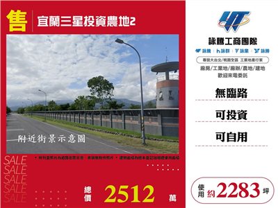 《詠騰工商團隊》 專營桃園工業地廠房出租出售 案名:宜蘭三星投資農地2 [價格]:2512萬 [坪數]:約2283坪【權狀+增建坪數】 [地理位置]:近台7縣