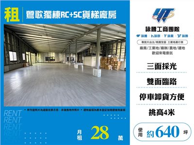案名:鶯歌獨棟RC+SC貨梯廠房