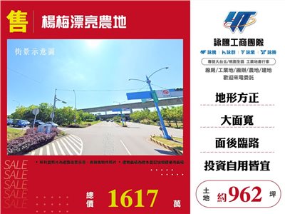 《詠騰工商團隊》 專營桃園工業地廠房出租出售 案名:楊梅漂亮農地 [價格]:1617萬 [坪數]:約962坪【權狀+增建坪數】 [地理位置]:近交流道